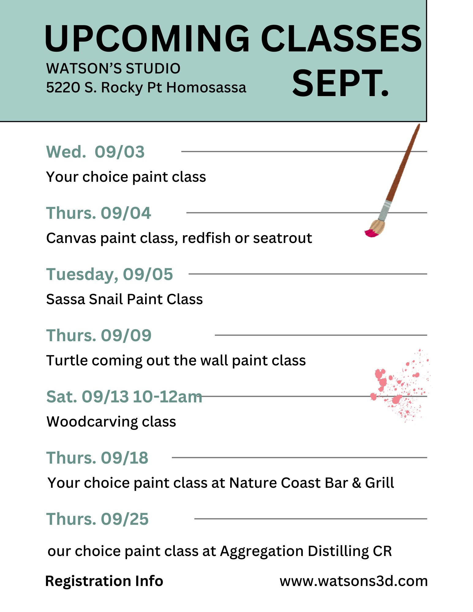 Sept. class schedule